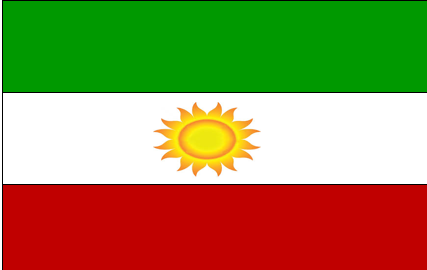 Su forma es rectangular y se divide en tres franjas horizontales iguales de colores: Verde, Blanco y Rojo. En el centro de la bandera se ubica un sol.